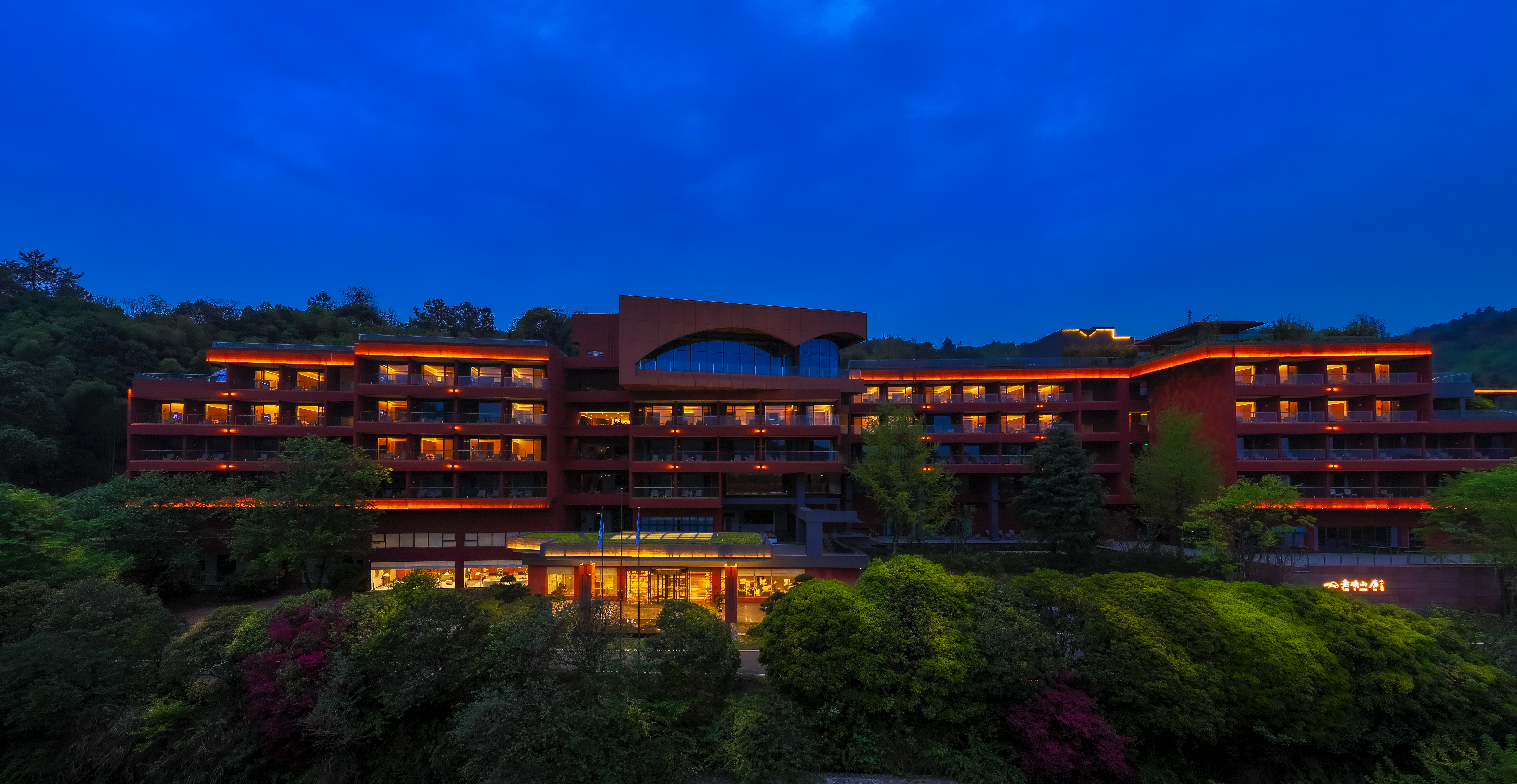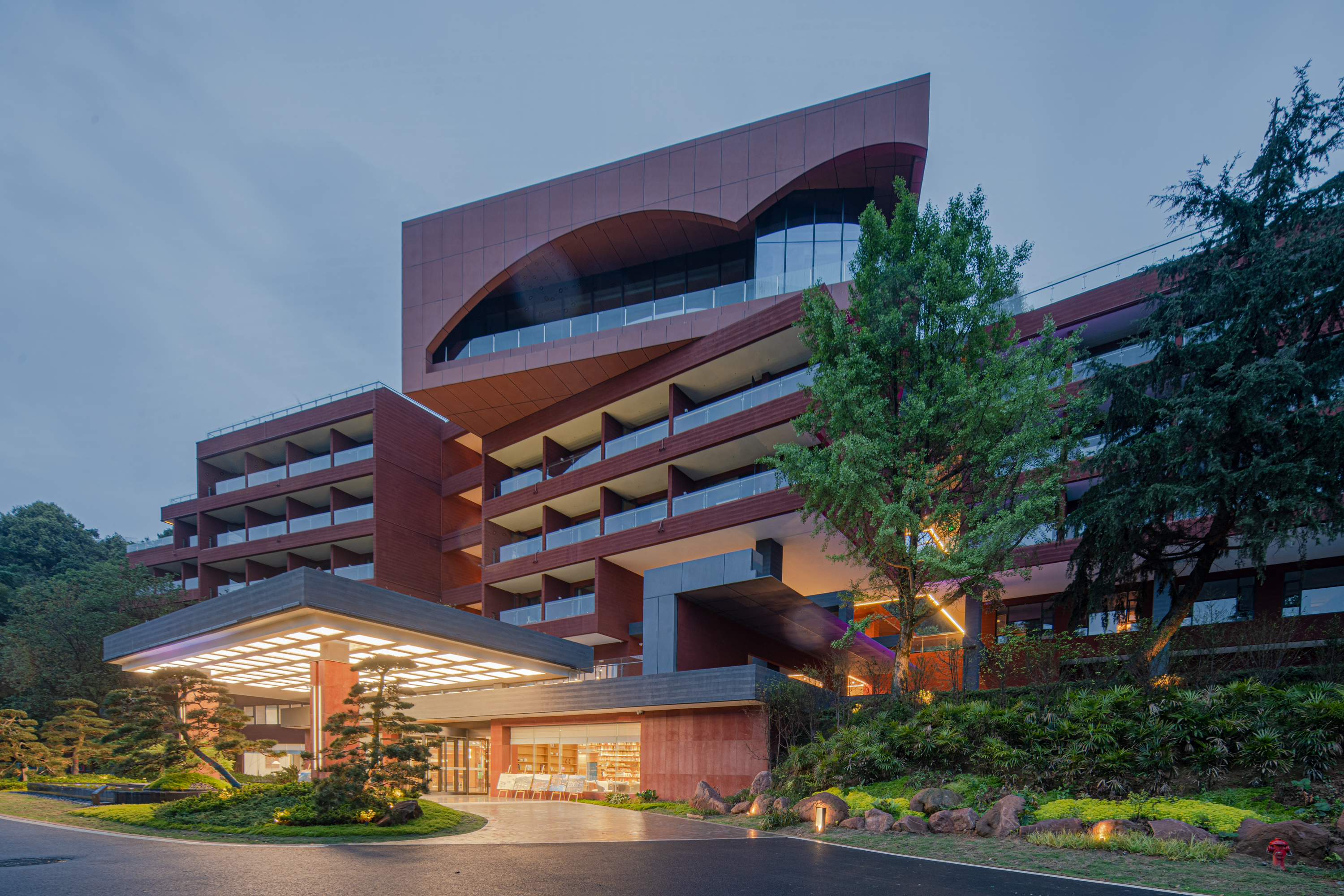 酒店坐落於风景优美的老峨山景区山门口,是一家集商务接待、主题住宿、特色餐饮、旅游度假、书院文化和茶文化体验於一体的书院式酒店。酒店占地面积约106亩,总建筑面积约1.35万平方米,酒店设有健身房、小童戏水池、温泉、汤池、篝火广场、KTV音乐吧等休闲娱乐设施。酒店地理位置优越,四季景色不同,春赏山花,夏享绿荫,秋看红枫,冬赏雪景,优美的景色让人流连忘返;满足不同客羣的旅居需求,成为生态观光、休闲度假、康养运动、乡村体验为一体的复合型旅游目的地酒店。